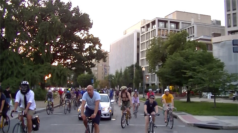 Critical Mass rides on the last Friday of every month in DC are growing! Although not as big as the 600 rider Bike Parties (yet), these rides now seem to get bigger every month. The July 25th ride went to the DC General/DC Jail area, then to the SE Waterfront between the Navy Yard and the river and a mid-ride stopover. After that the ride went back through town before ending at a bar just south of U st.