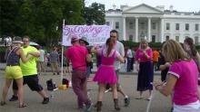 On June 21, the DC Food Justice Bike Tour visited a number of locations with economic and food justice significance. The first was a Ben and Jerry's outlet in Georgetown, where the Milk with Dignity campaign is seeking higher wages for dairy workers in Vermont. This campaign is following in the footsteps of the sucessful Coalition of Immokalee Workers campaign for higher wages in tomato fields. Ben and Jerry's is a major customer of the dairy factory farms in Vermont, just as Burger King is a major customer of tomato producers.