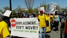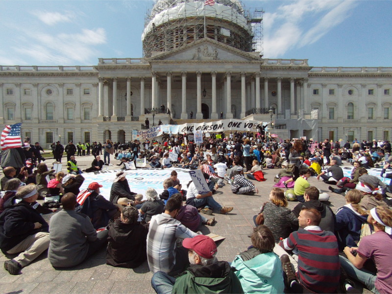 On the 12th of April, restaurant workers protested first at the DC Council, then at the Ronald Reagan Building demanding that the minimum wage for tipped workers be raised from $2.77 an hour to $15 an hour. The National Restaurant Association ("other NRA") was meeting at the Reagan building. Outside, protesters offered a stack of bags of ice as the "Frozen Wages Award" for former NRA CEO Herman Cain for his role in blocking prior increases in the mimimum wage for restaurant workers, who at "tipped employees" can make next to nothing if the restaurant is empty on a bad night.