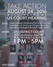 Emergency call for solidarity with Standing Rock Sioux at Fed court hearing over Dakota Access Pipeline