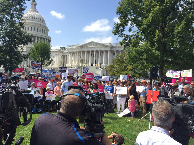On the 16th of September, Trump supporters held their "Mother of All Rallies" on the Mall, only to draw a very small turnout compared to promises. They reserved two panels of the Mall, but at times had only a few hundred people, and one Twitter poster claimed up to half were counterprotesters. Dozens of the MOAR attendees were "alt-right" white supremacists, some with explicitly white supremacist flags and emblems.