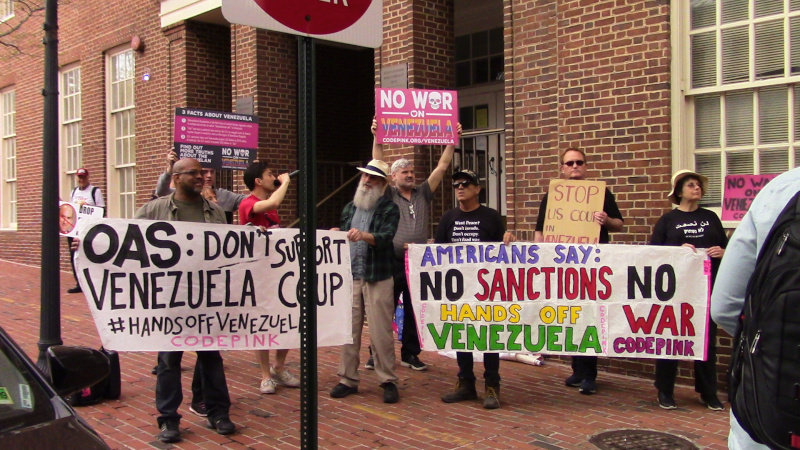 Activists stage symbolic defense of Venezualan Embassy after OAS votes to recognize US backed coup plotter