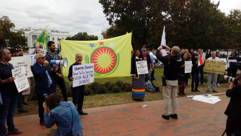 On the 12th of October, members of the Kurdish community supported by area anti-Fascist activists once again gathered at the White House to condemn Turkey's terror bombing and Trump's greenlight for a Turkish invasion of Kurdish portions of Northern Syria(part of Kurdistan is in Syria).