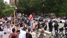 The 19th of June featured thousands of protesters in the streets of DC for march after march. A massive party took over 14th and U towards evening, and a "Fuck the Police" march set out from the White House at sunset. This march wound it's way to MPD's headquarters-and proceeded to pull down the statue of Confederate general Albert Pike located right next to MPD!
