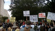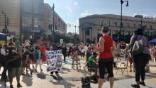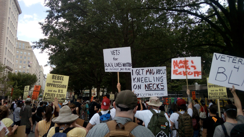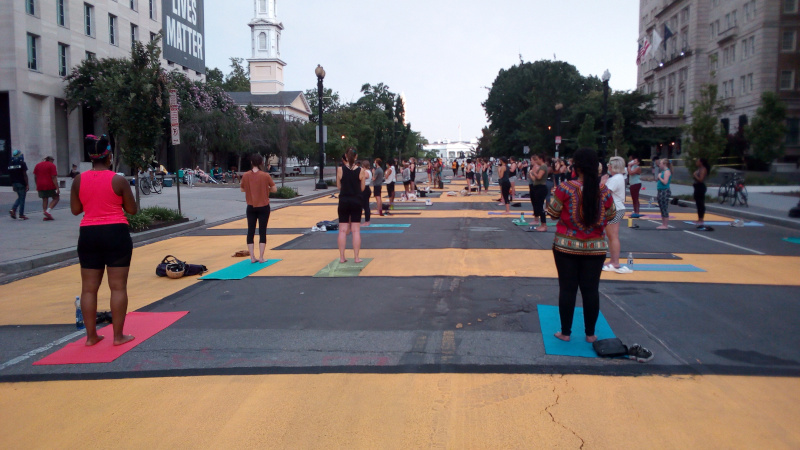 On the 29th of July, Black Lives Matter activists held a "protest and paint" sign painting on BLM Plaza to prepare for Saturday's big push. Back on July 16, cops harassed a similar sign painting session, this time MPD had the good sense to stay away. About an hour and a half into this, activists on bikes rode through the Plaza as part of an evening ride.