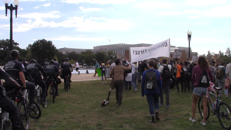 On the 22nd of October, the youth/student Climate Strike/FridaysForTheFuture protests began again. Here in DC, protesters marched from Union Station to the Capitol, encountering way too many cops there. After the rally there, protesters were set to march to the White House, backing up the five young folks there on hunger strike demanding action on climate chaos and fossil fuels.