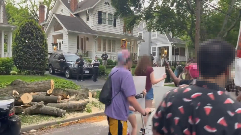 Video from in front of Kavanaugh's house originally posted to Twitter by "Downright Impolite" 10 sec