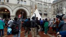 On the 27th of March, at least three different actions were carried out against the AIPAC dinner gala at the Verizon Center. IfNotNow projected an image beginning at around sunset while Code Pink, Avaaz, and others set up on F st where most of the AIPAC delegates had to go to enter. Still another group set up alongside the arena on 7th st about a block further north.