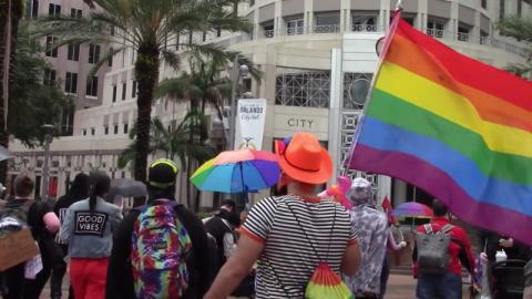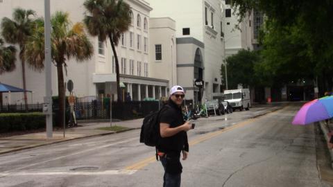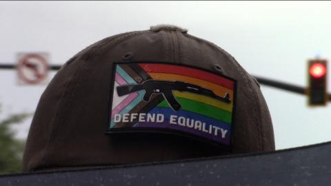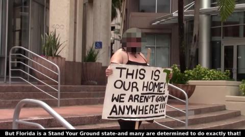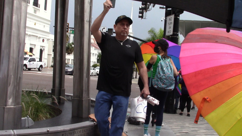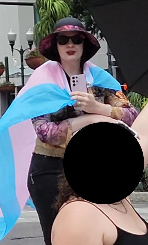 The woman in the trans flag here is an undercover Nazi, even chanted "Fuck DeSantis" with the crowd to maintain cover. Also caught cheering for "Larry" (actually Gary) the only car driver who cheered for the fascists.