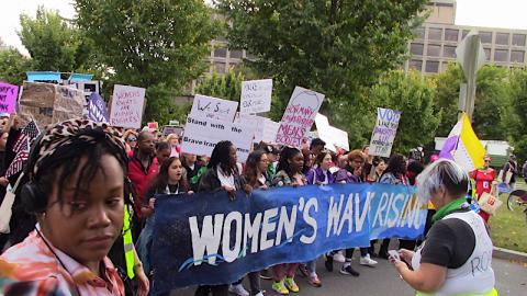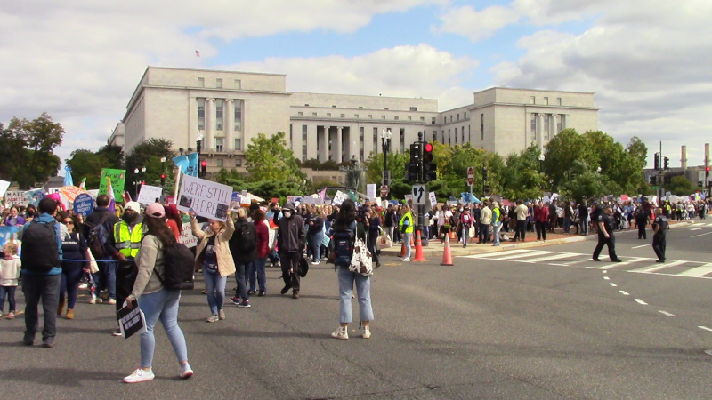 Main group of counterprotesters was MUCH smaller than Women's March. Man on point for this is wearing a MAGA hat