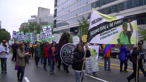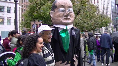 Scabby the Rat calls out labor abuses and lack of protections on World Bank funded projects