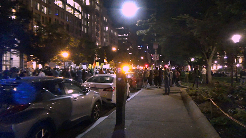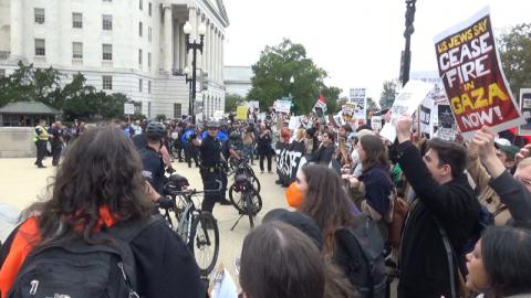 LOTS of cops holding Penn Ave closed. Seems cops here do NOT like Palestine protests