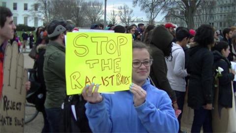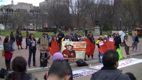 On the 16th of January, migrants backed by Native American activists protested in front of the White House to demand not only and end to the recent terror wave of ICE raids, but all deportations. At the climax of the protest activists laid flowers around the borders of a cutout of the part of Turtle Island claimed by the US, saying" we are here because you're there." As this was done a long list of destructive US interventions in Latin America and the Middle East that generated migrants was read out.