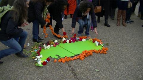 Video a featuring Lakota speaker and the "we are here bacause you're there" flower laying