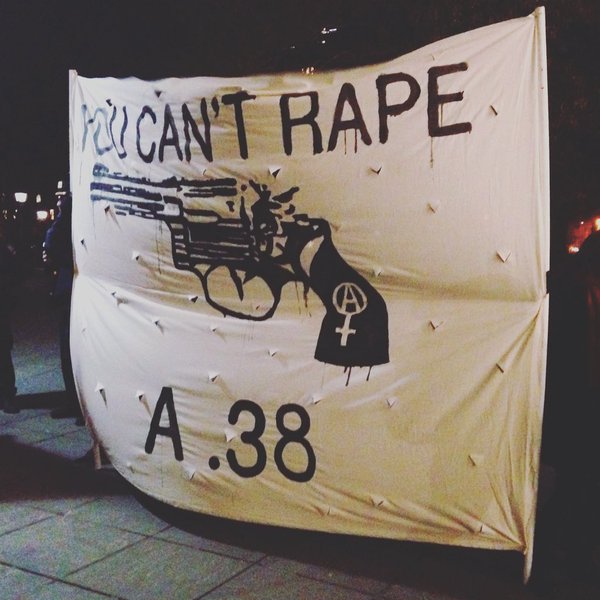 In New York City, protesters beseiged the Dream Hotel, where a Roosh event was suspected of taking place in spite of the claimed cancellation. One of the signs there said blunty that "you can't rape a .38," a slogan also referenced in some of the chants. At least one person was reportedly arrested at the NYC protest. The events of NY lend further credence to suspicions that the Twitter and web postings claiming the meetups were cancelled were hoaxes aimed at deceiving anti-rape activists.