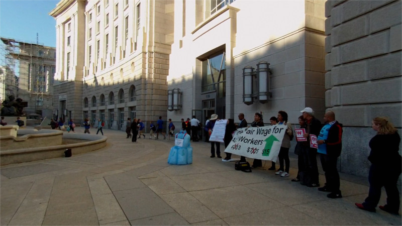 Protesters called out the origins of tipping workers instead of their bosses paying them as a relic of the time of slavery, when newly freed slaves often worked for tips only. Even the Washington Post has written on this regrettable orgin of the tipped worker system.