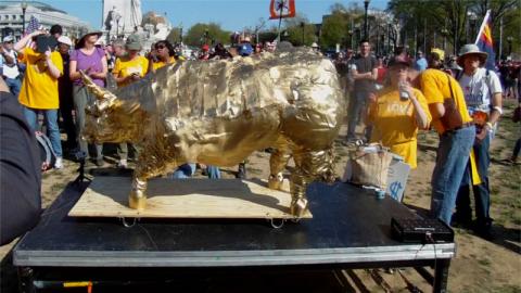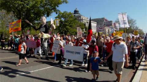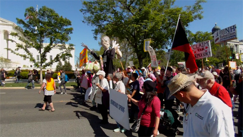 On the 17th of April, thousands participated in a massive march against corporate and other cash in politics. With this march, Democracy Spring transitioned into Democracy Awakening.The march wound past the House Office Buildings and the US Capitol before passing the US Supreme Court and finally ending at a faith rally in front of Union Station. There a "Golden Bull" evoking the Biblical Golden Calf and the Wall St Bull was placed on a stage symbolizing what Congress and the Supreme Court worship.Chants included a demand to overturn Citizens United-and Occupy's famous "we are the 99%" in contrast to the 1% who buy and control politics.
