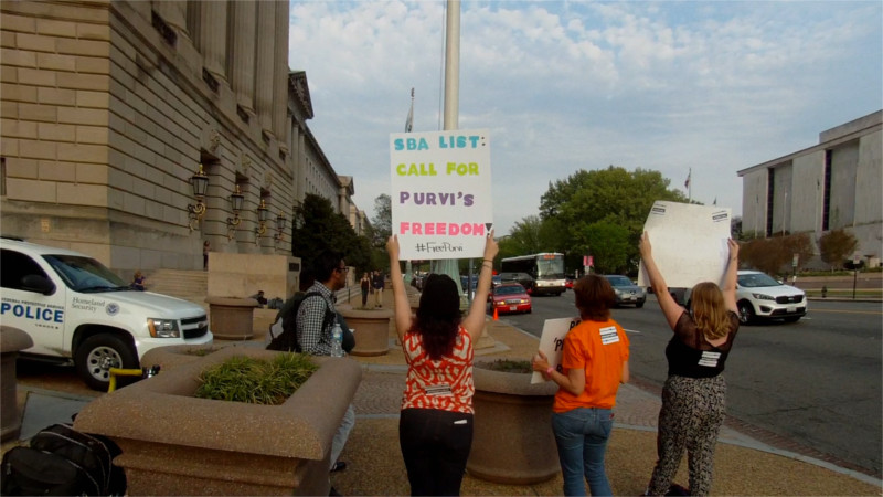 Purvi Patel is serving 20 years of a 46 year "feticide" sentence in Indiana over a use of pills ordered online for a self-induced abortion that left her in the hospital. Donald Trump has called for, then tried to retract his call for imprisoning women like Purvi for illegal abortions. The Susan B Anthony List and other antichoice groups have been attempting to distance themselves from Trump's call for prison terms. On the 21st of April the Susan B Anthony List held a high-profile dinner at the Andrew Mellon Auditoriam on Constitution Ave. Outside, protesters held a vigil demanding the "walk the walk" by issuing a statement calling for Purvi Patel's release.