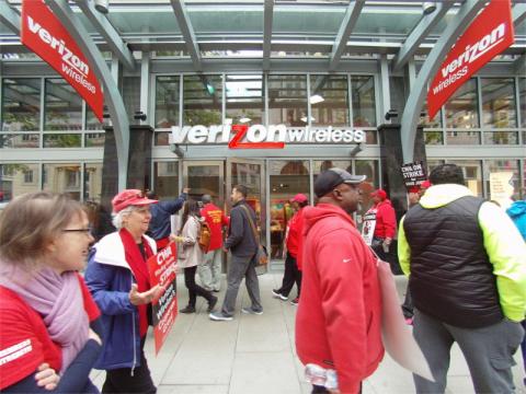 Striking Verizon workers, union allies picket Verizon Wireless store