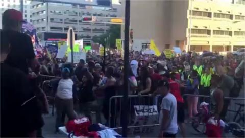 Video-Protesters battle police, interrupt Trump in New Mexico