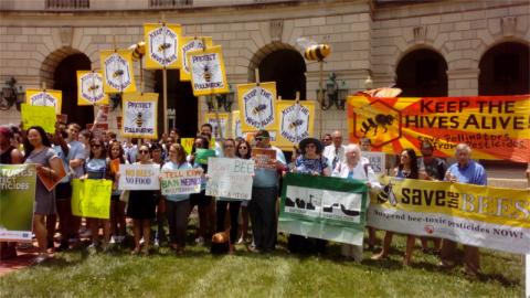 In MD, consumer use of the deadly, bee-killing "neo-nicotinoid" pesticides has been banned, handing a huge defeat to Bayer, Syngenta, and Monsanto. Now activists and farmers who depend on pollinators are trying to duplicate these results nationwide and exend them to ALL use of these chemicals. Meanwhile, the pesticide makers are attempting to set farmers who do not depend on bees against those who do to block this effort.