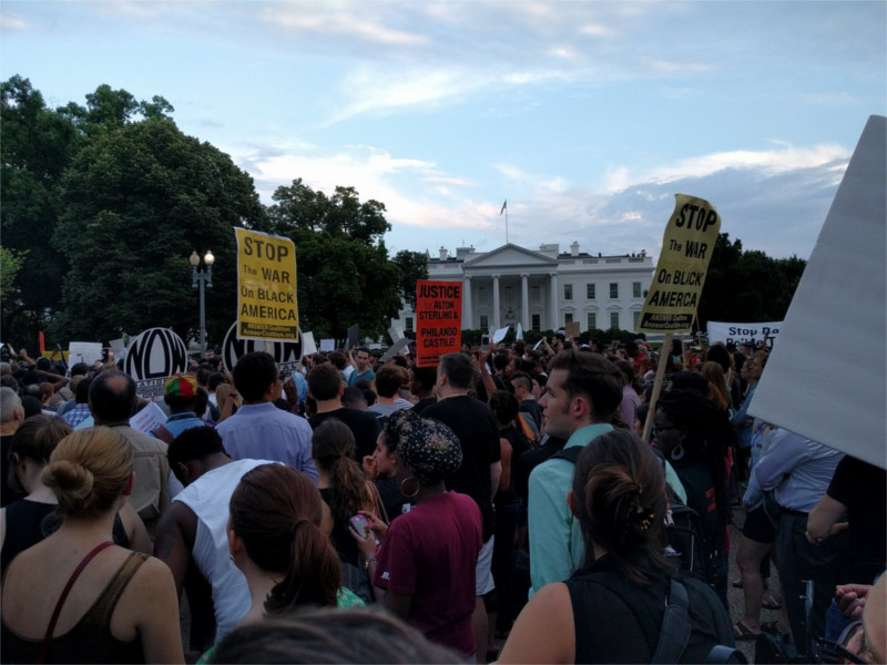 In the wake of yet more police shootings of young African-American men, Black Lives Matter protesters took to the streets of DC in two locations. One march began at the White House and went to the Capitol, breaking through the first of two police lines set by US Capitol Police in the process. The other march began at the Congress Heights Metro station and was called "Roll Up on 7D" for their ending location at the 7D police station in Anacostia. Some mainstream media outlets reported only on the march in NW.