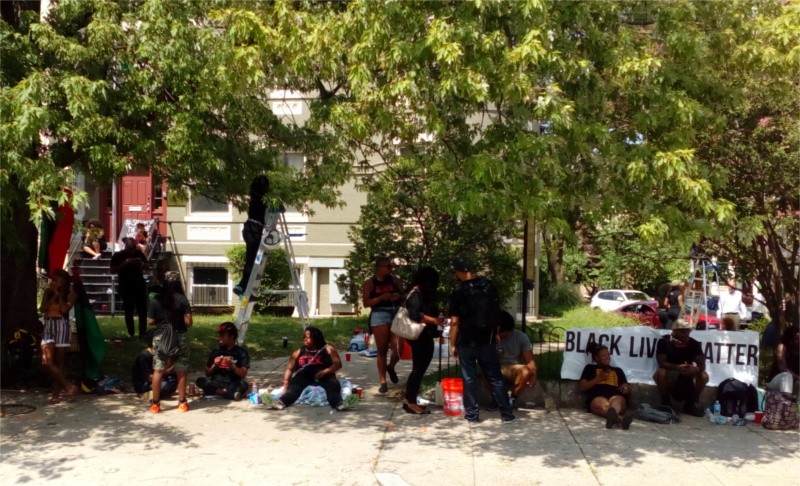 In the DC action, protesters arrived at the FOP's lobbying office ahead of any of the oppositiion at 7AM. Placing the empty building under siege they ensured that no lobbying for police impunity could take place there on July 20 for the entire day. Meanwhile allies blockaded Mass Ave at 4th st.