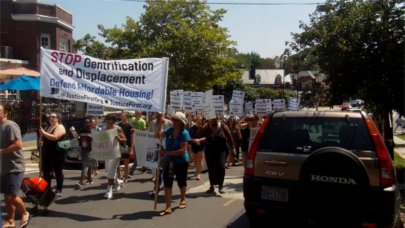 Geoffrey Griffis, managing member for CityPartners, LLC is up to his neck in the efforts to evict all residents of Congress Heights in Anacostia so a new "mixed use" development can take their place. On the 23rd of July under scorching heat, dozens of Congress Heights tenants backed up by residents of other properties facing deliberate slum conditions and other illegal eviction schemes showed up at Geoffrey's luxurious Cleveland Park home to warn that he can't try to put people out of their homes, then return to his home and not have problems. Protesters called out CityPartners LLC for a business model based on emptying out buildings so the condos can come.