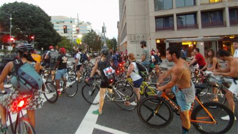 A hot night did not deter DC's Critical Mass bike ride from returning to the streets on July 29, the last Friday of the month. These rides are basically social rides these days, departing from Dupont Circle at shortly after 8PM.