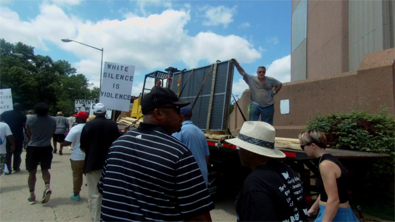 On the 14th of July, "LT" Leslie Irby died from the effects of extreme heat in the DC Jail. The air conditioning system has been broken since before that time and inmates have reported temperatures as high as 100F in their cells. On the 3rd of August, Cease Fire: Don’t Smoke the Brothers and Sisters led a march on and around the jail demanding repairs and an end to the baking hot cells. On the very day the protesters arrived a crane was set up, with a new condensor section for that HVAC system being slung to hoist to the roof where maintainance crews were finally at work. The odds that this is a coincidence are low, given that the system has been broken for many weeks.