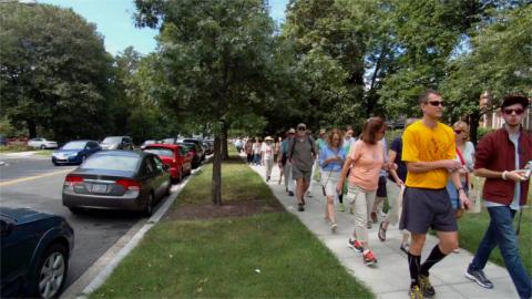 On the 15th anniversary of the 9-11 attacks, a "Unity Walk" originated at Washington Hebrew Congregation, ended at the Islamic Center, and stopped in at most of the churches, temples, and other religious institutions along the way. The march was in opposition to religious hate, under the theme "know your neighbor." At the Islamic Center, a Jewish Rabbi spoke condemning the persecution of US Muslims that has taken place since the entirely foreign 9-11 attacks. No direct mention of Trump and the wave of hate he was stirred up was necessary.
