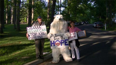 On the 19th of May, Obama appeared at a fundraiser in ultra-wealthy Potomac, MD. Activists opposing the Keystone XL and favoring clean energy were there to greet his motorcade. Meanwhile, traffic backed up for miles as Secret Service forced Montgomery County police to shut down both MacArthur Blvd and Falls Road for that motorcade.
