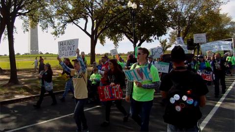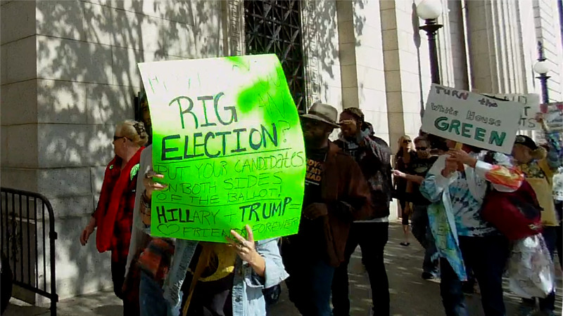 On the 23ed of October, the "Take Back Democracy March on DC" condemned Hillary Clinton for rigging the Democratic primaries to defeat Bernie Sanders. The majority of the march appeared to support Green Party candidate Jill Stein as an alternative to a ballot they say is rigged by controlling both sides.