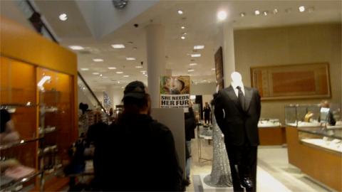 On Black Friday, Nov 25, animal rights protesters marched into Neiman-Marcus, demanding the upscale chain store stop selling fur and related products. Afterwards they marched around the block, stopping at Maggiano's, the scene of the previous week's confrontation with the neo-Nazi National Policy Institute(NPI).