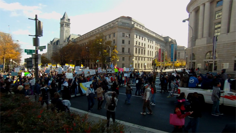 On the 27th of November, water protectors from Standing Rock and a huge crowd of allies marched from the Dept of Justice past Trump Hotel to the Washington Monument. Once there, speakers described the ongoing campaign, the strategy, and the brutal repression water protectors have received in the process of slowing down and hopefully stopping the Dakota Access Pipeline