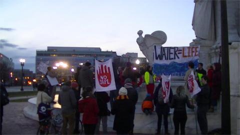 On the 3ed of December, SURG DC and other opponents of the Dakota Access Pipeline marched from the Columbus monument at Union Station to the Capitol Hill home of Wells Fargo board member Elaine Cho. She is married to Senator Mitch McConnell(R-K), and her home in Kentucky received a simultanious protest from the SURJ chapter there. Wells Fargo has agreed to meet with Standing Rock elders but has yet to stop disbursing loan money to the Dakota Access Pipeline project and divest of their major financial interests in the "Black Snake" pipeline.