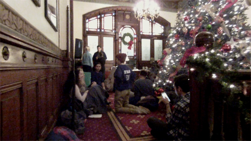 On the 8th of December, the Georgetown Solidarity Committee decided they have had enough of Georgetown University's refusal to cancel their contracts with Nike. At 10AM, a crew of students occupied the University President DeSioia's office, then at around noon a much larger solidarity rally marched into the building and occupied the lobby in front of it as well. As of 6:30PM Dec 8 students are still holding out.