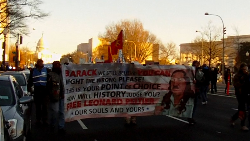 Vigil behind the White House demanding freedom for Leonard Peltier