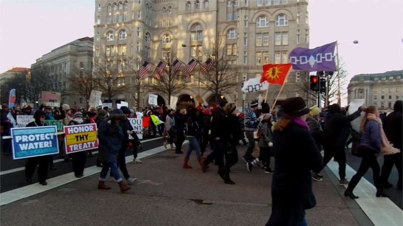 On the 10th of December, the Standing Rock and Beyond march and rally demanded that Obama move to finish off the Dakota Access Pipeline and grant executive clemency to Leonard Peltier. Leonard Peltier's eldest son spoke at the rally on both his father's ongoing political imprisonment and on the dangers of corporate power over water.
