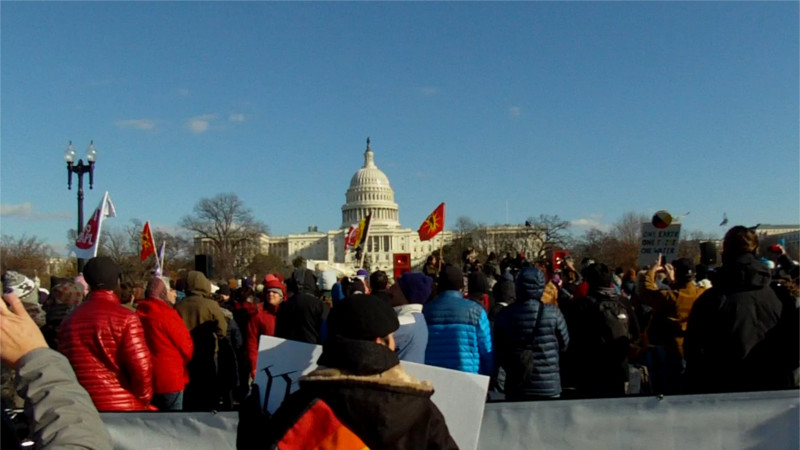 After the rally at the US Capitol, marchers proceeded to the EPA's headquarters on 12th st, just across 12th st from Trump Hotel. While there were probably few people on duty at EPA, Trump Hotel is reported to be filling up with right-wingers who have business with the incoming Trump administration. Shortly after the conclusion of this rally, the Leonard Peltier Defense committee held a vigil on the south side of the White House demanding the release of Leonard Peltier. This had also been a demand of the march, in which members of Leonard's family had taken part.