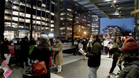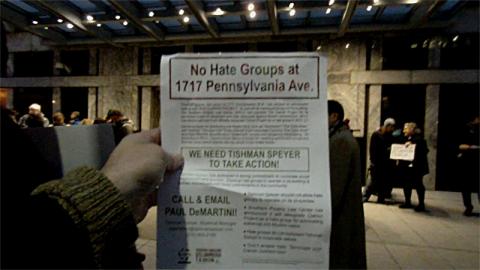 On Dec 21, both Jewish and Muslim activists backed by allies held a "No Hate Groups at 1717 Penn" rally, demanding that the extremist,anti-Muslim Clarion Project be evicted from the building for peddling hate. It is rare to hear of social activists demanding anyone be evicted, but hate groups are an exception to this rule. Tishman Speyer rents space in 1717 Penn Ave to the Clarion Project, which the Southern Poverty Law Center has announced plans to formally designate as a hate group.