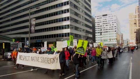 On the 26th of January, Donald Trump appeared at a 3 day GOP retreat in downtown Philiadelphia just blocks from the historic City Hall building. Several thousand protesters marched to the police barricades just one block away. Three issues dominated the protests: healthcare, the Keystone/DAPL pipeline executive orders, and Trump's racist wall/sanctuary city/deportation executive orders.