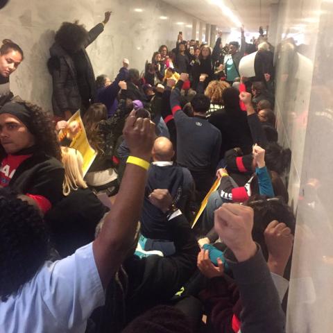 On the 31st of January, protesters against Trump, his Muslim ban, and his extremist cabinet nominees filled the hallway in front of Sen Orrin Hatch's office. As of 3PM Capitol Police threatening arrests
