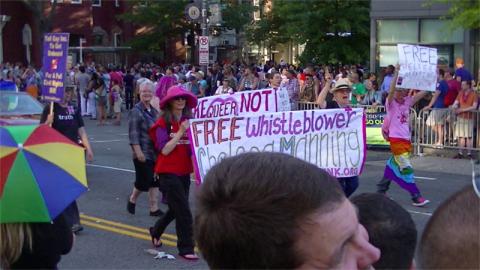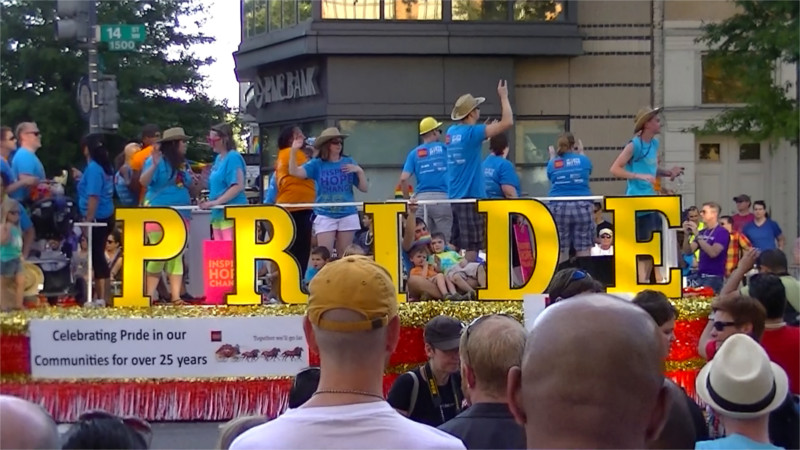 The Capitol Pride Parade on June 7, 2014 was the least corporate Pride parade I have seen in many years.In addition, the so-called "Human Rights Campaign" was held accountable for throwing non-assimilationists and especially trans folks under the bus by activists who threw nasty dead fish at them. Someone later said "Choke on the bones, transphobe douchebags" in a Twitter post. Also on the scene was the infamously homophobic Westboro Baptist Church. I saw them chased out of one position after several parade floats opened fire with Super Soaker water squirters on them.
