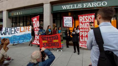 Water protectors rally at Wells Fargo, demand DC divest from DAPL banks