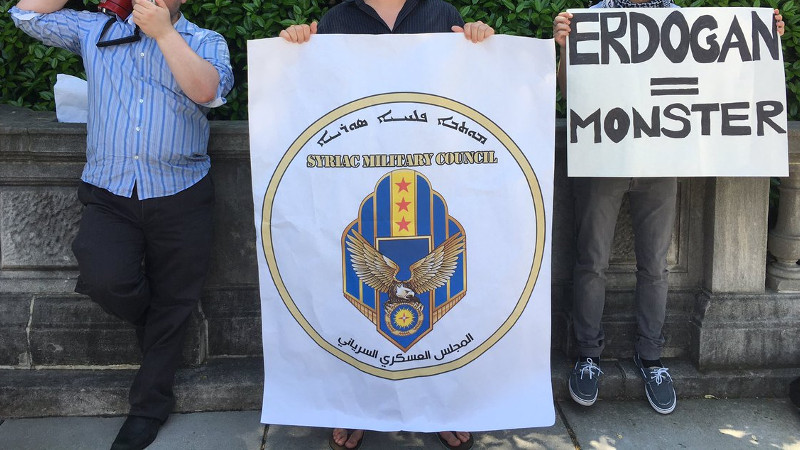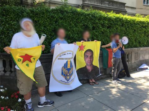 On the 16th of May, Turkish dictator Erdogan's security forces beat and kicked peaceful pro-YPG and Armenian protesters near the Turkish Embassy.On the 19th of May, protesters returned to the Turkish ambassador's home near the embassy. They denounced both Erdogan's security squad's brutality in DC and routine similar behavior in Turkey. Kurdish activists and DC area antifascists were both present at this protest.