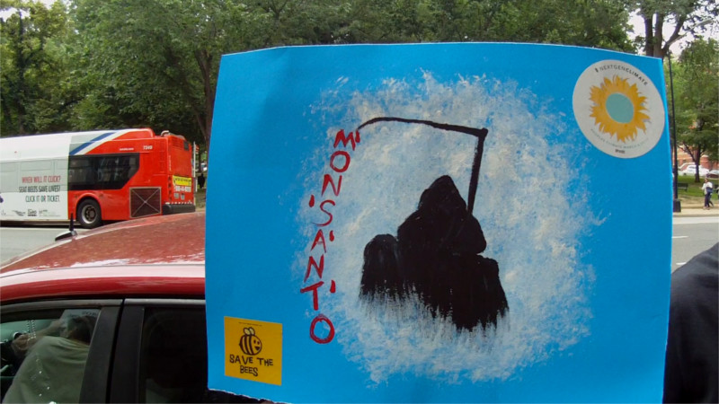 On the 20th of May, the annual March on Monsanto marched from the White House to Monsanto's DC corporate lobbying office on I st by the south side of Franklin Square. This time around, protesters were demanding not only an end to Monsanto's genetically modified crops and seed patents but also to their production of white phosphorus, sold to the US military and used in places like Gaza.