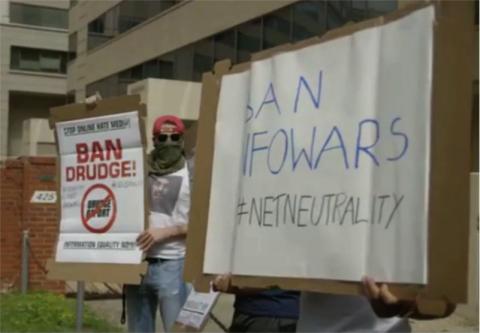 On the 18th of May, activists holding a sit-in and rally at FCC headquarters for net neutrality noticed several folks trying to pose as anarchists, with signs calling for banning far-right websites. This message was in direct conflict with net neutrality. Jack Posobiec streamed this fake news of planted signs onto Twitter via their "periscope" service.