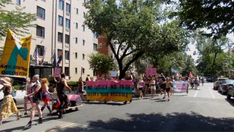 Video of No Justice No Pride blockade against MPD plus footage of pre-blockade march over the Pride route and Wells Fargo blockade