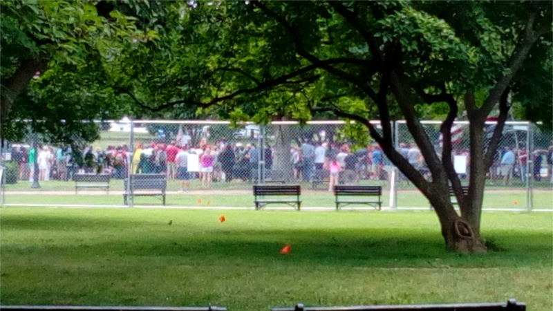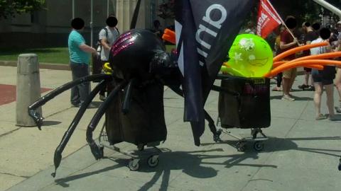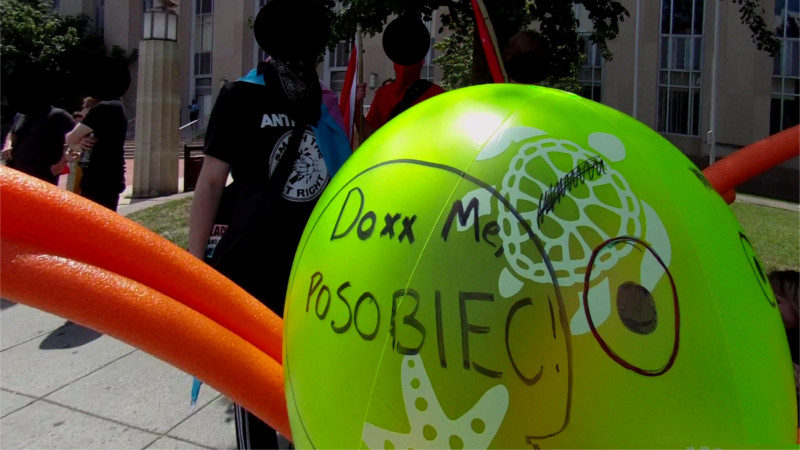 The "alt-light" group was expected to show up at MPD with cameras in efforts to first photograph and then dox participants in the protest at the Metropolitan Police Department(MPD). One of the two Portland-style spiders brought by the protesters even said "Dox me Posobiec" in reference to this. A well-planned security response kept suspicious photgraphers at a distance and there was no mass invasion by facists from either rally at any time. Such an invasion was entirely expected but never arrived. Due to the announced plans for Kyle Chapman ("Based Stickman") to be at the Lincoln Memorial rally, the possibilty of armored fascists armed with melee weapons wading into the crowd had to be considered This time around, however, the only fascists who showed up at MPD were the cops and a few far-right photographers. When the expected fascist assault didn't show up, the free speech protest eventually marched away to a nearby Metro station to get people out of a still-dangerous area.